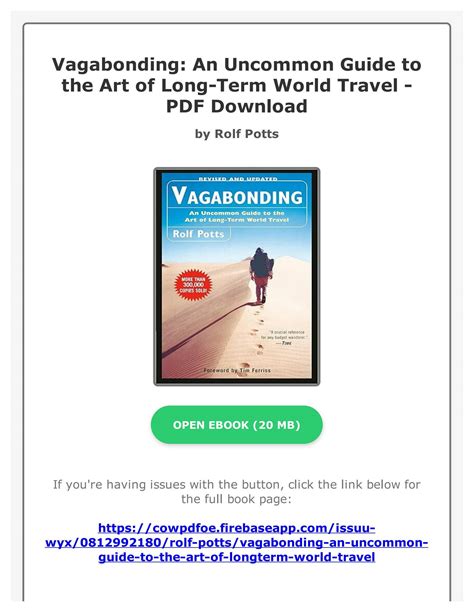 Download Vagabonding Uncommon Guide Long Term Travel Doc By Click Button. Vagabonding Uncommon Guide Long Term Travel it’s easy to recommend a new book category such as Novel, journal, comic, magazin, ect. You see it and you just know that the designer is also an author and understands the challenges involved with having a good book. You can easy klick for detailing book and you can read it online, even you can download it